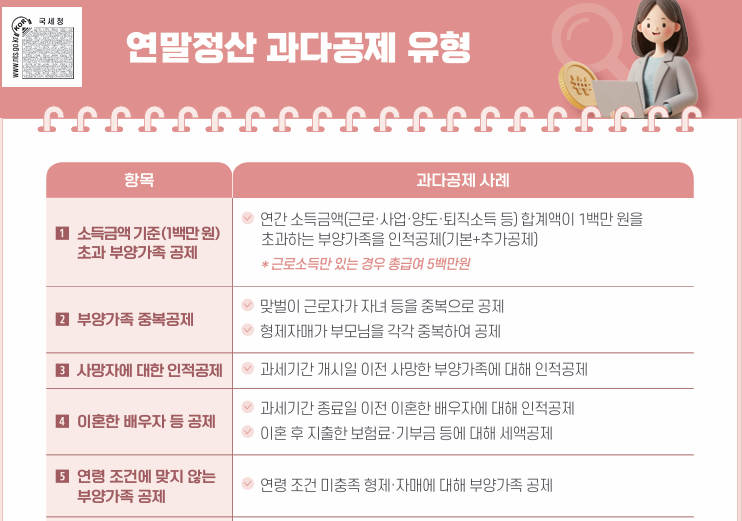 최근 인적공제 부분에서 실수를 하여 과다공제 되는 경우가 많다고 합니다.