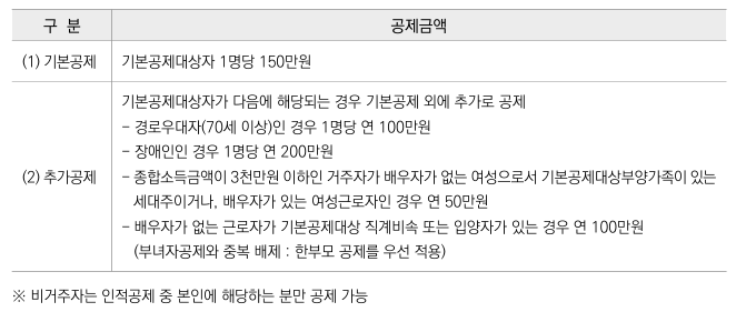- 기타 : 부녀공제 등(아래 표 참조)
